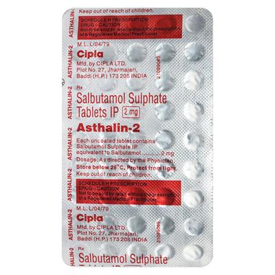 ASTHALIN 2 TABLET contains Salbutamol which belongs to the group of medicines called Bronchodilators. It is used to manage asthma and chronic obstructive pulmonary disease (COPD). It can also be used to manage chronic bronchitis (inflammation of the bronchus), bronchospasm (narrowing of airways) and emphysema (shortness of breath).