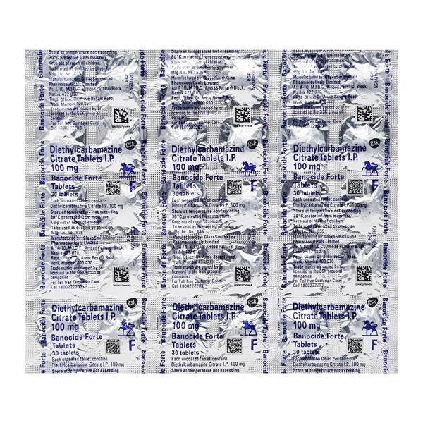 BANOCIDE FORTE TABLET contains Diethylcarbamazine which belongs to the group of medicines called Anthelmintics. It is used to manage filarial infections, tropical eosinophilia and toxocariasis. It is also used to manage loiasis (eye worm infections).