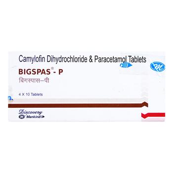 BIGSPAS P TABLET is a combination of Camylofin and Paracetamol which belongs to the group of medicines called Anti-spasmodics, Analgesics and Antipyretics respectively. It is used in the management of abdominal pain and spasm associated with Irritable bowel syndrome (IBS), spasms associated with diarrhea and dysentery, renal colic (pain when the stone gets stuck in the urinary tract causing painful, bloody, or cloudy urination), biliary colic (pain in the abdomen due to obstruction by stones in the bile duct), intestinal colic (cramp-like pain in the small or large intestine) and dysmenorrhea (period or menstrual cramps around the abdomen, hips, lower back).