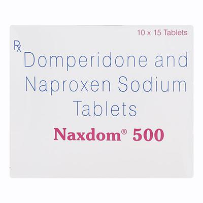 NAXDOM 500 TABLET is a combination of Domperidone and Naproxen, which belong to the groups of medicines called antiemetics and NSAIDs (non-steroidal anti-inflammatory drugs), respectively. It is used to manage the symptoms of migraine, menstrual migraine, and chronic daily headaches associated with nausea and vomiting.