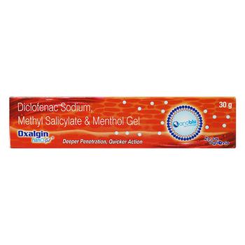 OXALGIN NANO GEL contains Diclofenac, Menthol and Methyl salicylate, which belong to the drug class of non-steroidal anti-inflammatory drugs (NSAIDs), Counter-irritants and topical analgesics respectively. OXALGIN NANO GEL is used to relieve pain associated with injury to joints and muscles which can occur as a result of straining and spraining while playing sports, or due to the injury occurring due to age wherein the cushion at the ends of the bone gets degraded resulting in pain and inflammation (Osteoarthritis).