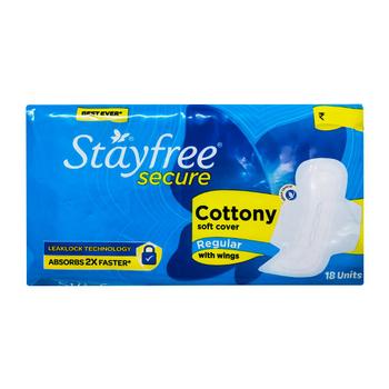 Stayfree Secure Cottony Soft Cover with Wings Sanitary Pads - Regular 18's